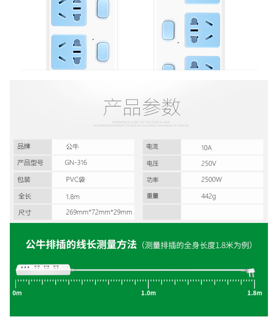 公牛GN-312插座五开五位3...