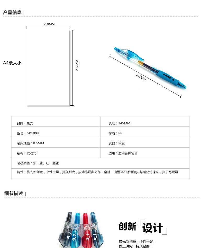 齐心R980中性笔芯红...