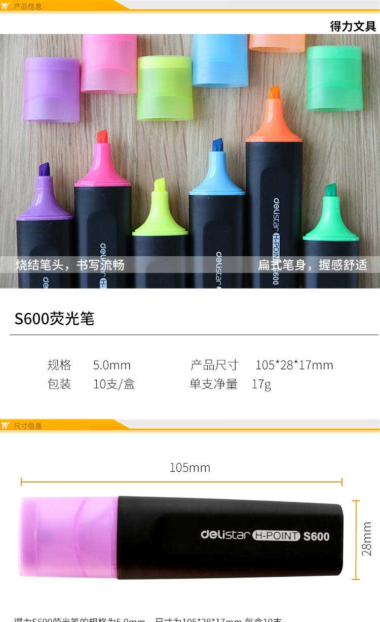 得力 S600 荧光笔...